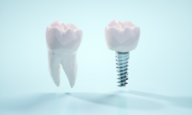 インプラントとは、人工関節や人工心肺などにも使用される、人間の体に安全な純チタンでできた人工の歯根を意味します。